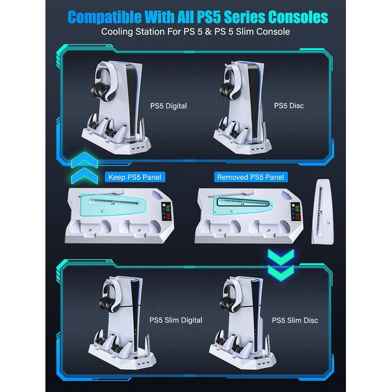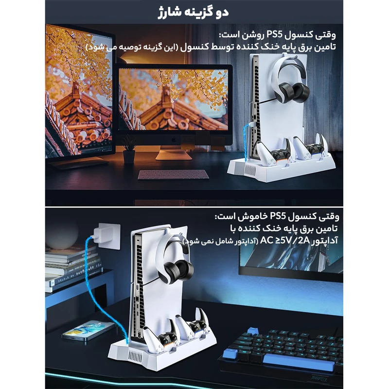 با پایه فن کنسول و شارژر دسته بازی مدل COOLING STAND YH-55-1، تجربه بازی خود را ارتقا دهید! با فنهای قوی برای خنکسازی بهتر کنسول و قابلیت شارژ همزمان دو دسته، بیوقفه بازی کنید! طراحی شیک و کارآمد، نظم و زیبایی را به فضای بازی شما میآورد. همین حالا سفارش دهید و از بازی لذت ببرید!